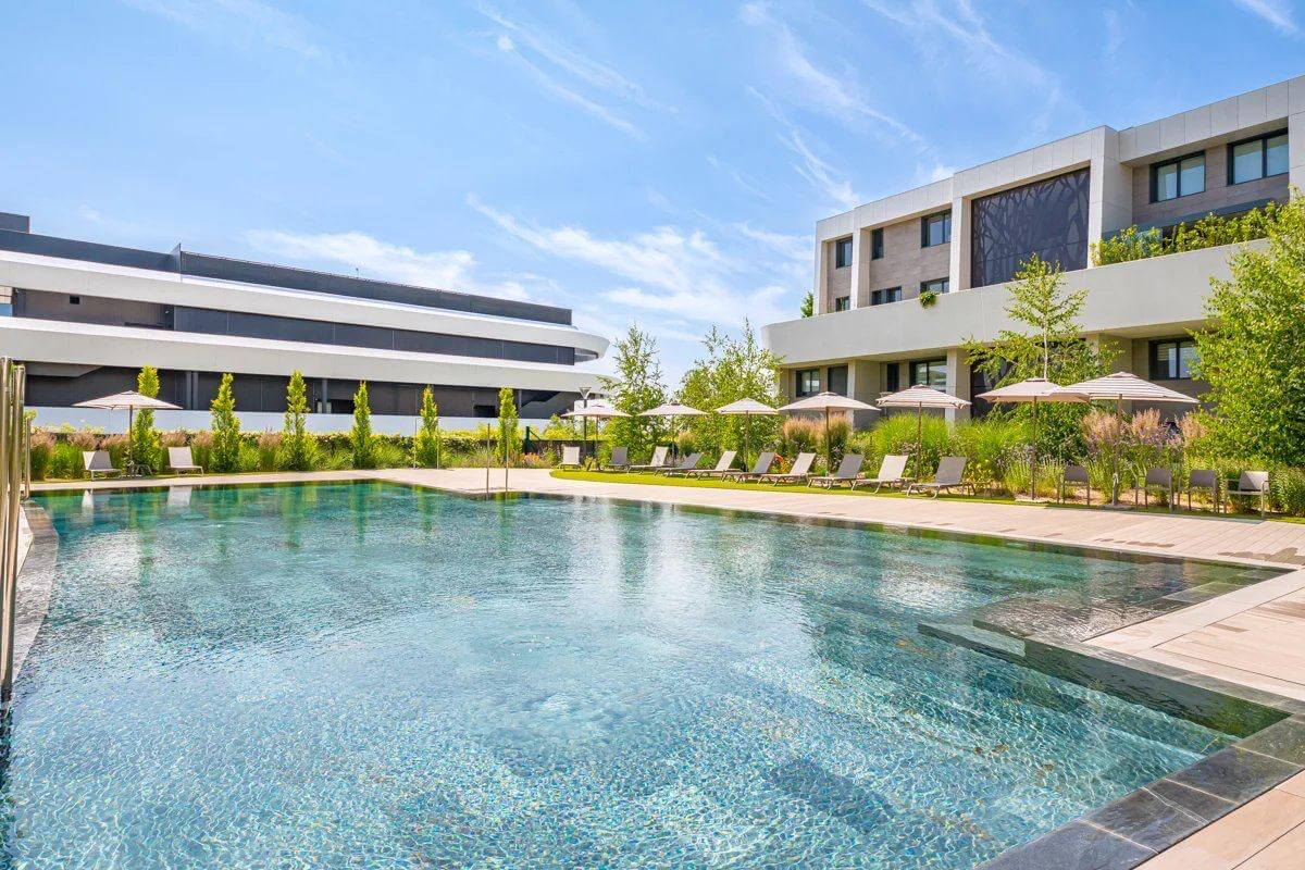 Located in one of Madrid’s most exclusive and secure communities, this residence combines contemporary design, comfort, and complete privacy within a privileged natural setting. The property features three bedrooms, including a master suite, two elegant bathrooms, and a spacious living and dining area with access to a private terrace overlooking the gardens. The separate kitchen is equipped with high-end appliances and includes a laundry room. Fully furnished and decorated with designer pieces and luxury materials such as Patagonia marble and Baccarat lighting, it also offers radiant floor heating, a smart home system, two garage spaces, and a storage room. Situated within the prestigious LAFINCA Gardens, the community includes a heated outdoor pool, gym, coworking lounge, 24-hour security, and extensive green areas.